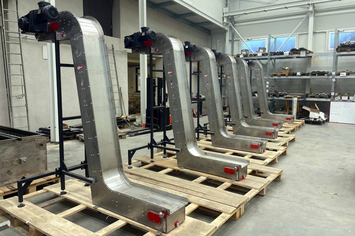 Angled conveyors can be supplied in the same way as straight ones: