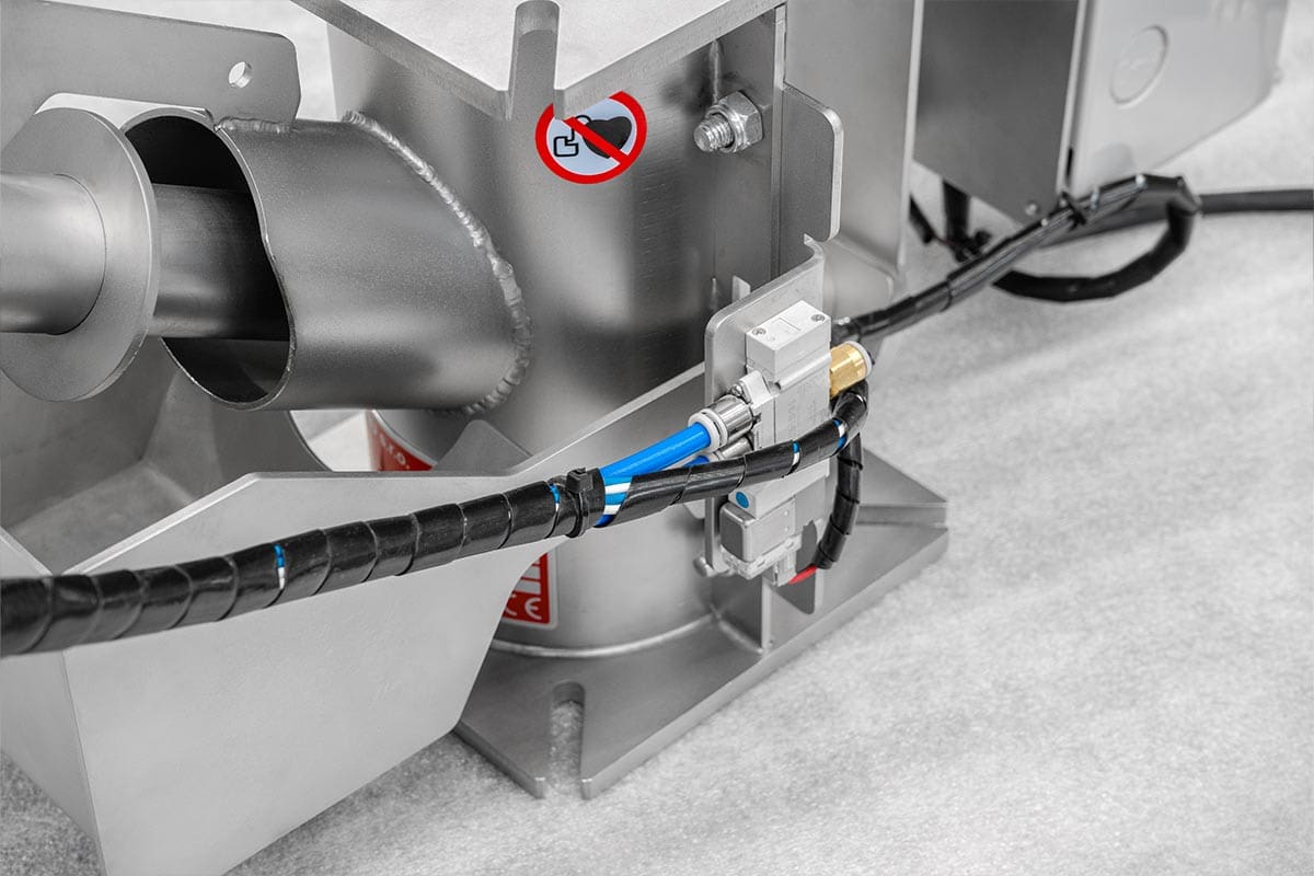 The reinforced body is designed to support a column of granulate as well as the entire hopper (approx. 200 kg). The separator can therefore be installed directly under the injection moulding machine hopper without the need for additional supports.