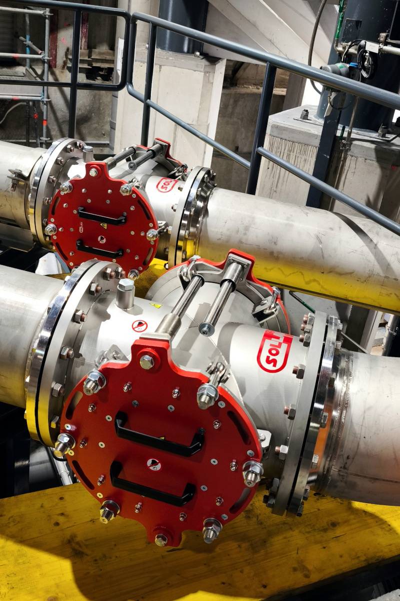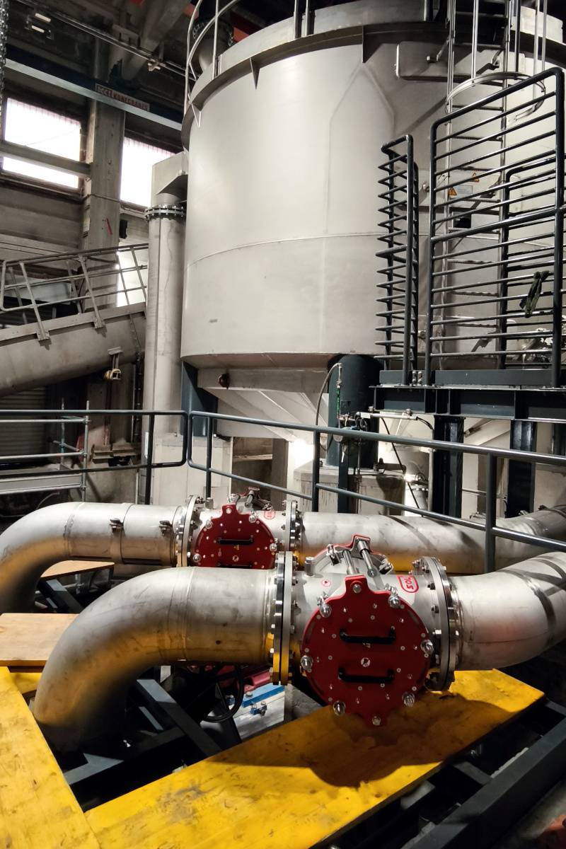 The pipeline magnet ML-P can be characterized by a robust stainless steel design, a big separation efficiency (thanks to the neodymium magnets), a high-capacity (no undesirable obstacles prevent the material flow in the inside of the separator body) and by an easy maintenance. The separator finds its use especially in the pulp and paper industry, because it can even deal with bridging and choking materials (like the longer fibers that are usually present in materials processed in the paper industry). On the contrary, with regard to a relatively big distance between the magnetic doors, the separator is not suitable for cleaning the materials requiring an extreme purity, e.g. in the food industry.
