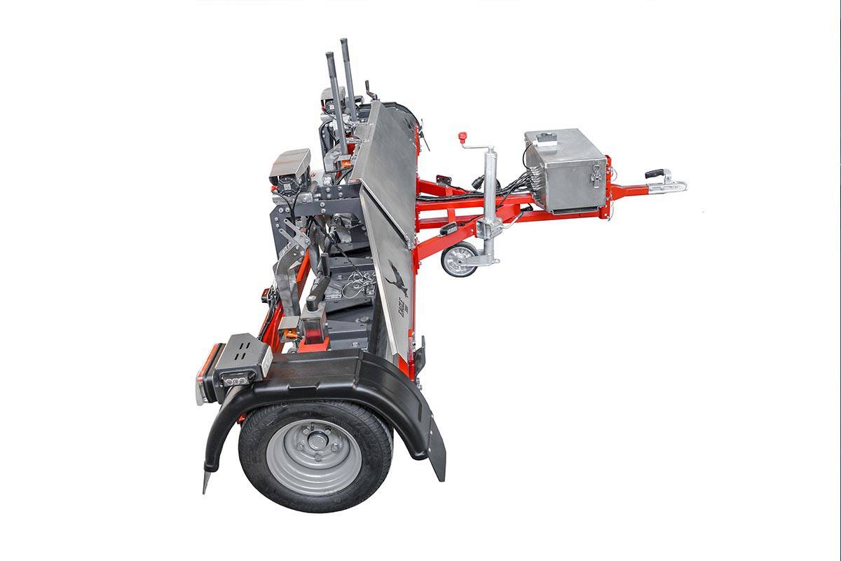 This giant magnetic sweeper consists of 3 separate trailers of very strong and durable construction, connected in a triple hinge during magnetic sweeping to form a single sweeping unit of exceptional performance. The main central hinge is equipped with telescopic arms with standardized connecting pieces for easy connection of side sweepers without the need for any tools.