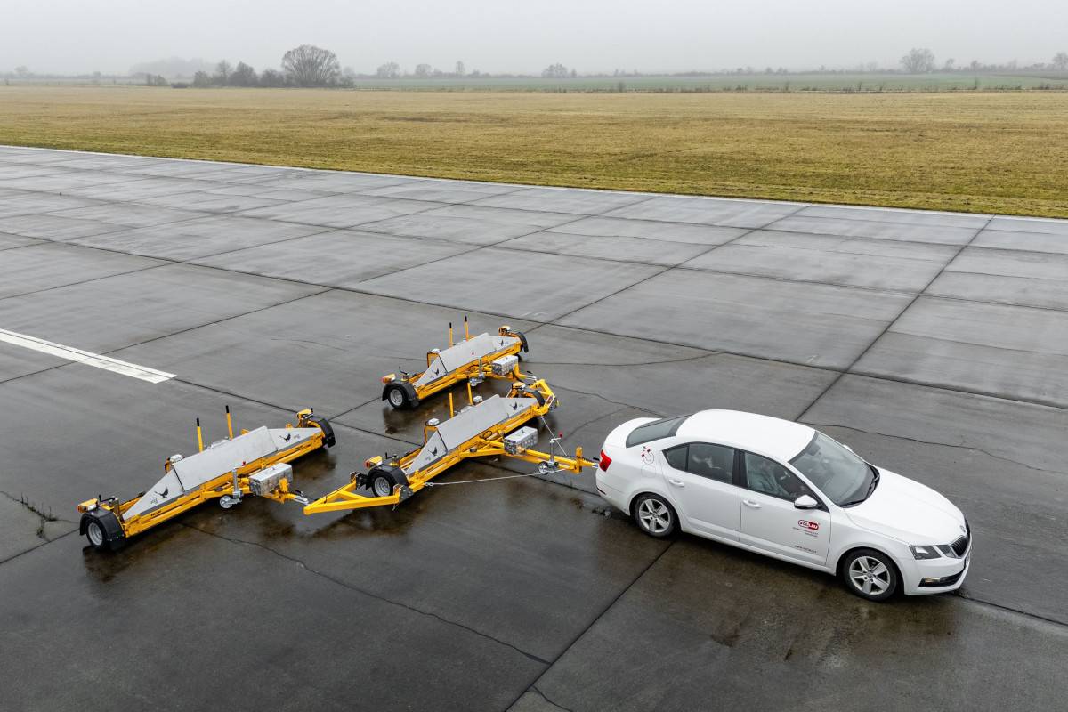 Each magnetic sweeper can be used for stand-alone operation, e.g. for local area sweeping (airport stands). Individual sweepers can also be towed one behind the other to multiply the effect of magnetic collection, or they can be towed in the same way in the transport mode, i.e. with the magnetic sleeve raised when transporting them to and from the sweeping sites.