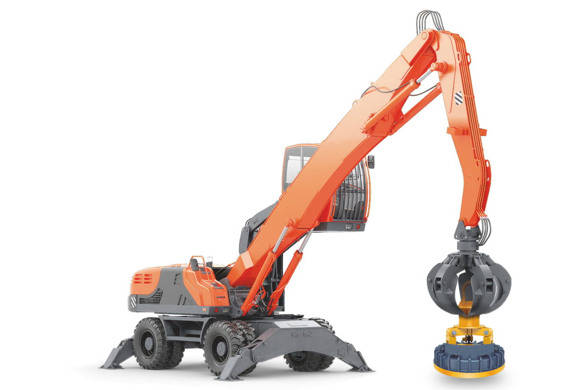The EMG-SM series electromagnets are designed for use on most mobile scrap handling machines, such as material handlers, excavators or cranes. Thanks to their universal design, they can be easily integrated into various types of equipment.