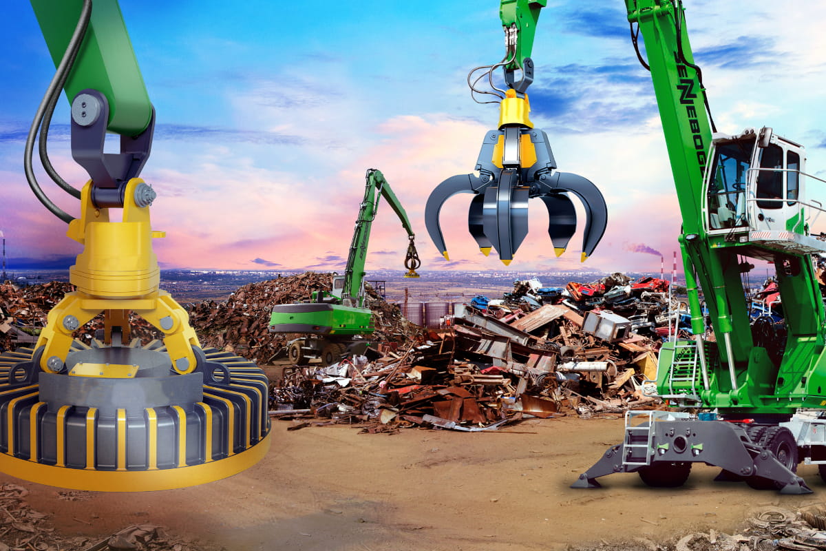 Thanks to the universal suspension and connection system, EMG-SM electromagnets are compatible with most common scrap handling machines, such as Sennebogen, Fuchs, Liebherr, Caterpillar, Hitachi, Volvo and others.