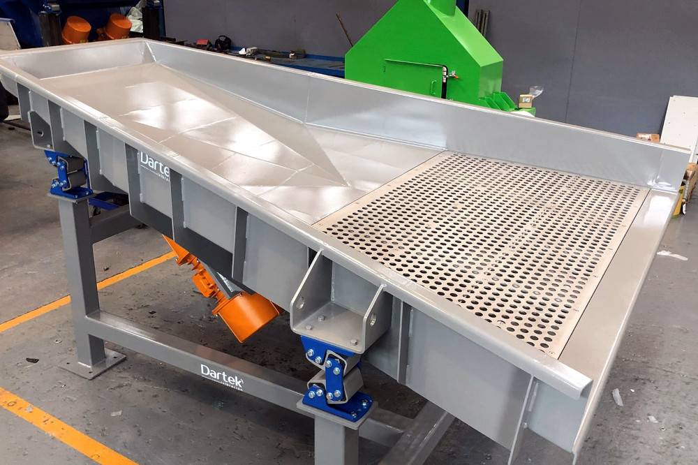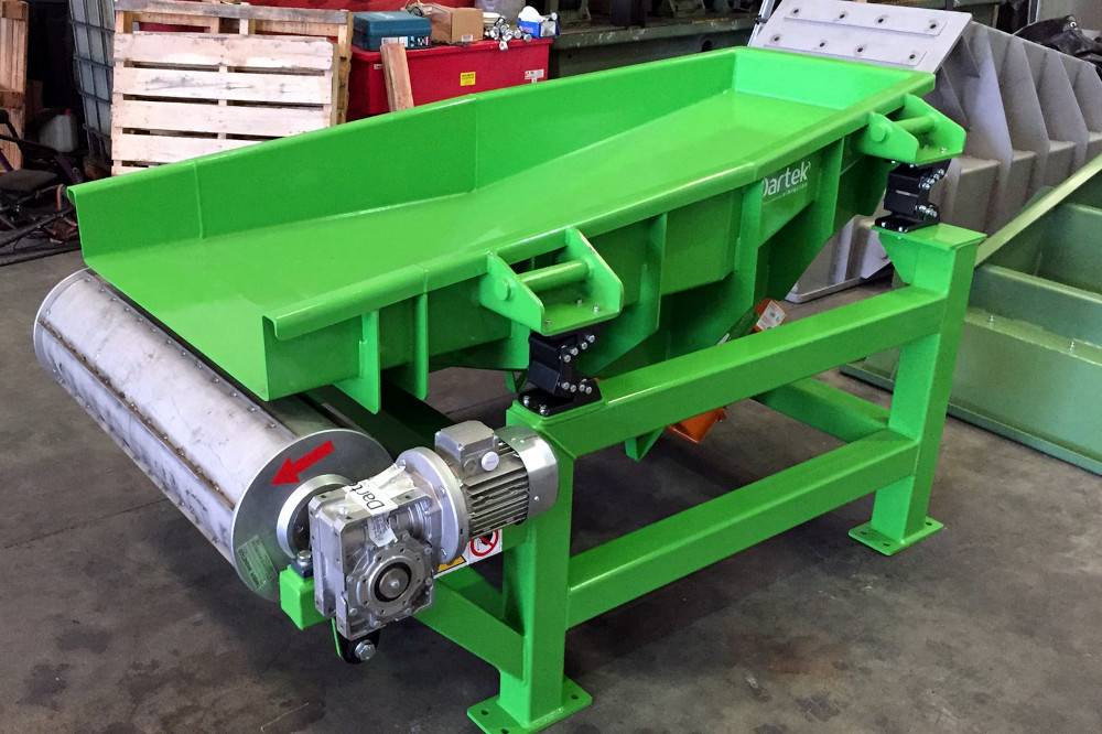 The spread feeder is designed for bulk materials of different fractions - from fine granulate to coarser aggregates - in branches such as mining, recycling, building industry, or fastener production.