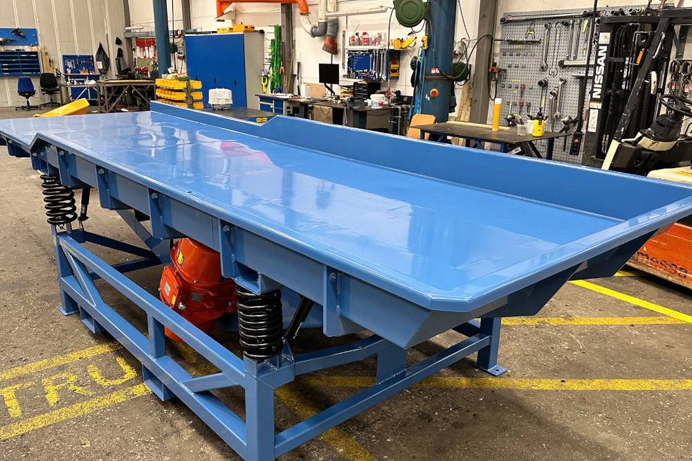 - Size - vibrating conveyor delivery in 9 widths and up to 12 meters in length as standard.